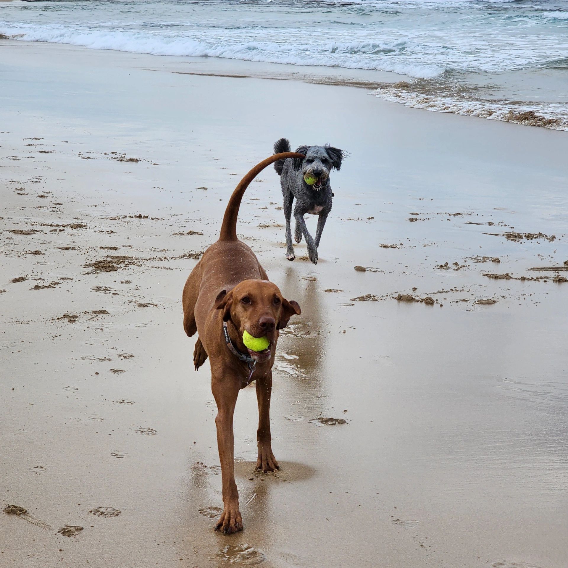 Maximum 4 compatible dogs, off-leash at one of our amazing local dog beaches.